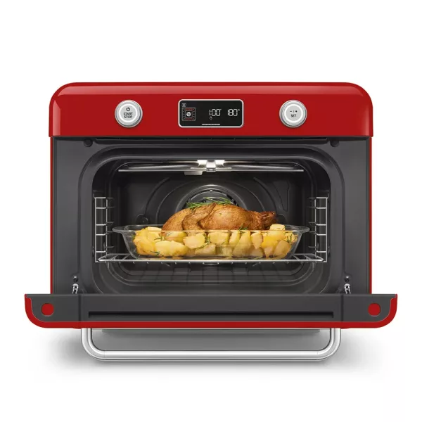 این دستگاه با این ویژگیها به شما این امکان را میدهد که در کوتاهترین زمان و با کمترین زحمت، غذاهایی حرفهای و با کیفیت بالا بپزید. فر و هواپز اسمگ رنگ قرمز مدل COF01 بهویژه برای کسانی که به دنبال یک فر چندکاره و هوشمند با طراحی مدرن و کاربردی هستند، گزینهای ایدهآل به شمار میآید.